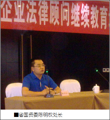此次培訓注冊由省國資委主辦,省國有資産法律保障協會秘書處承辦,國資委政策法規處陳明權處長作動員,國資法律保障協會徐佐中副秘書長作總結。培訓内容是:
