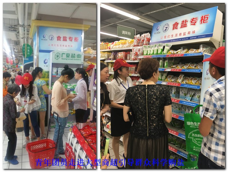 在城北好人家超市、城南華潤萬家超市食鹽專櫃邊,以及公司川鹽連鎖超市外,青年團員們通過發放宣傳資料、試用小包裝等,向消費者主要宣傳“川晶”品牌系列鹽産品,特别是加強了對高品質小袋鹽的宣傳,引導消費者積極購買“川晶”牌食用鹽,吃好鹽少吃鹽。