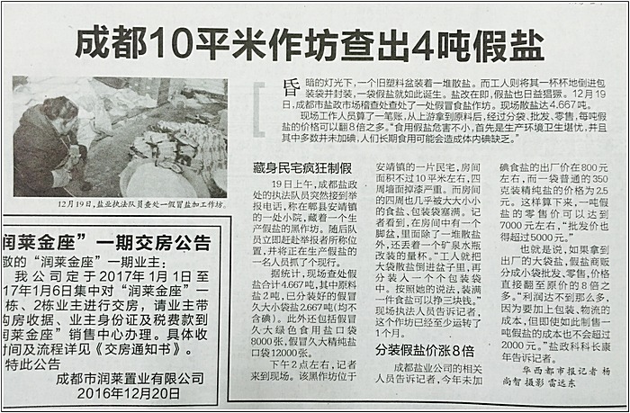 成都10平米作坊查出4噸假鹽