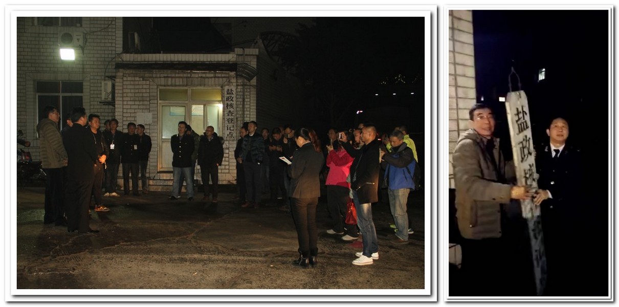 省鹽務局政策法規處顧凱處長、鐘福俊調研員在自貢稽查處、鹽政法制科相關人員的陪同下,與久大集團公司的領導一同在舒平駐廠點見證了自貢稽查處撤除鹽政駐廠點這一曆史性時刻。