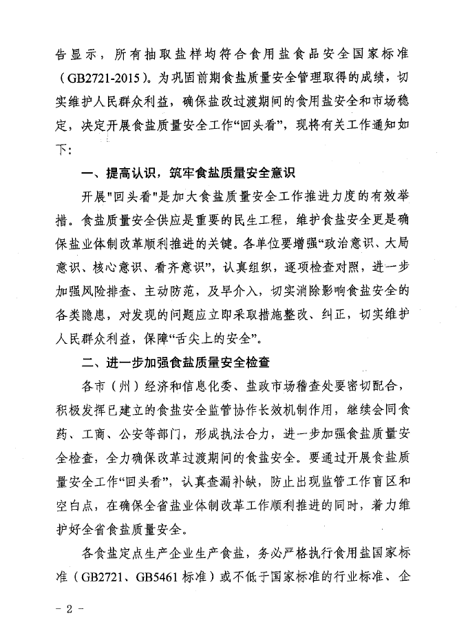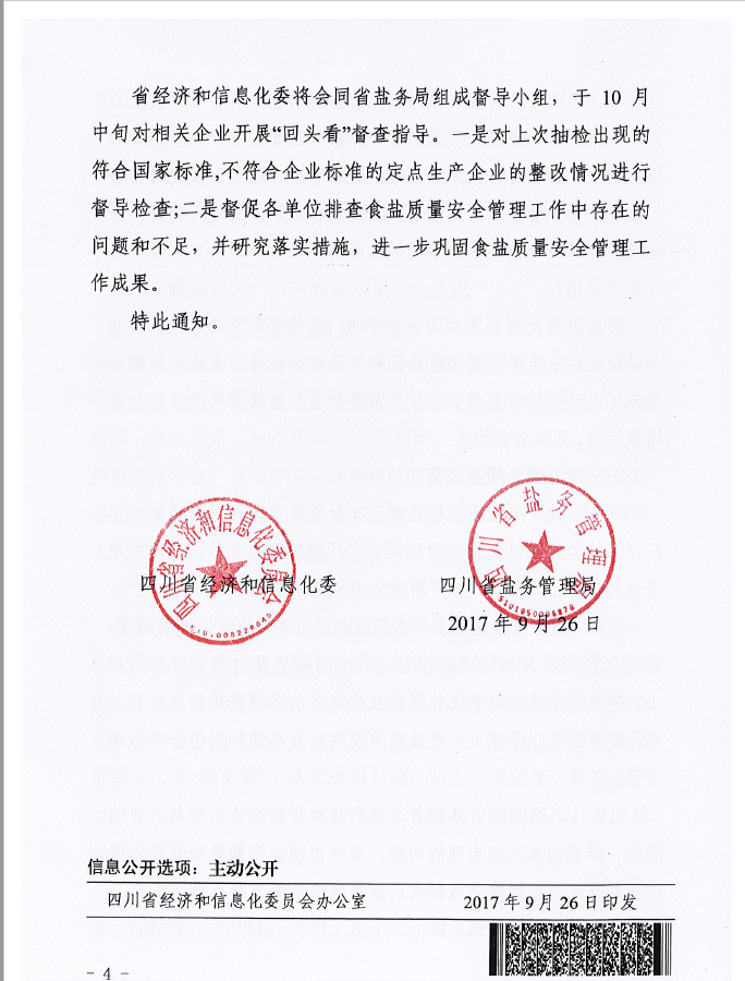 省經信委、鹽務局下發開展食鹽質量安全工作“回頭看”通知
