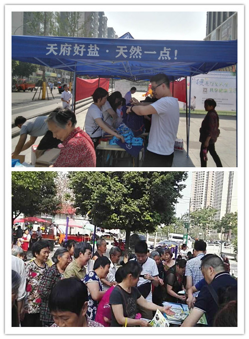 2018年5月15日是我國第25個“防治碘缺乏病日”, 今年的主題是“‘碘’亮智慧人生,共享健康生活”。旨在通過普及碘缺乏病防治知識,使大衆對碘缺乏病防治工作有科學、正确的認識。成都鹽業各片區公司配合當地衛生部門,緊密圍繞宣傳主題開展宣傳活動,積極回應消費者關注的碘鹽熱點問題。