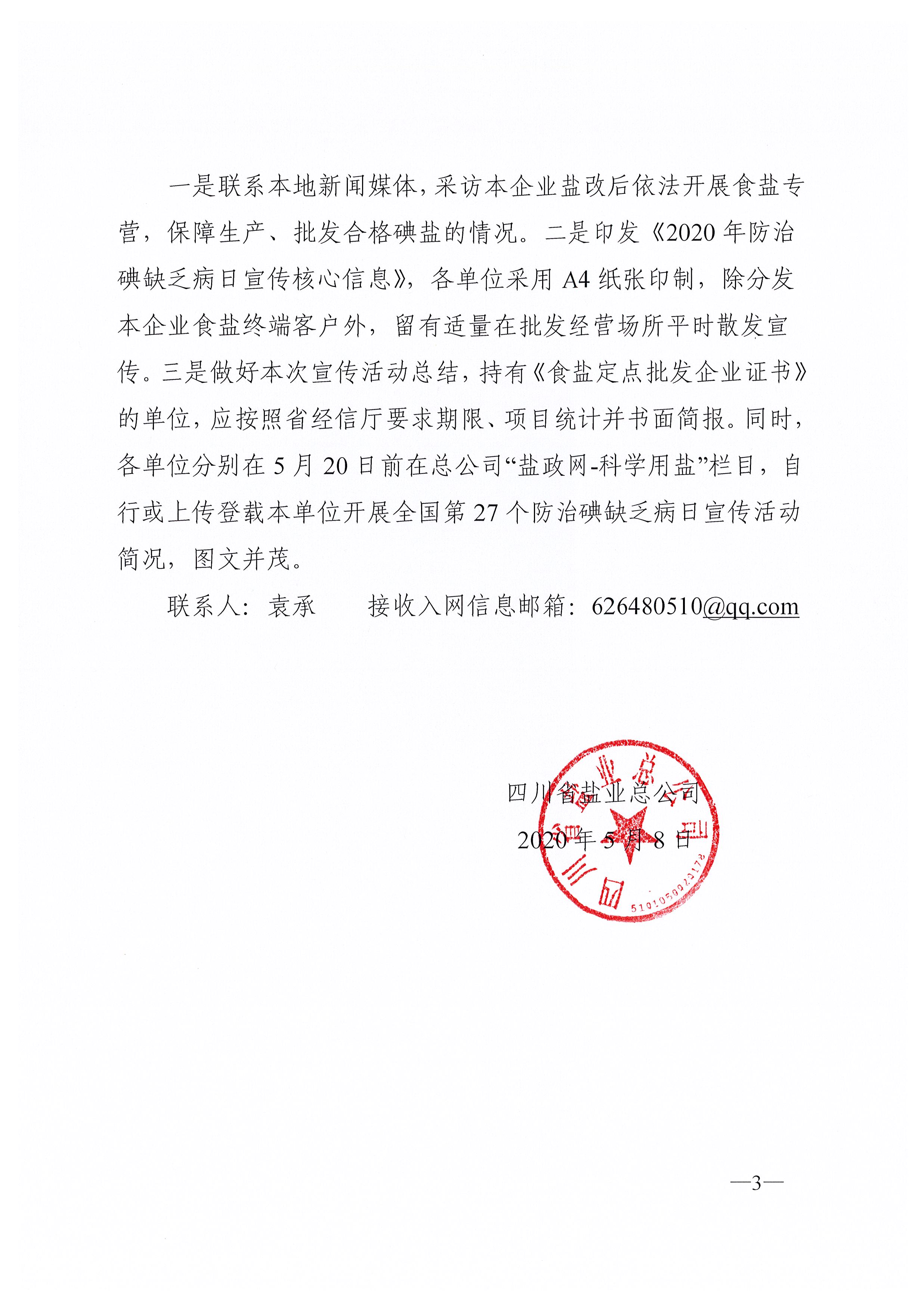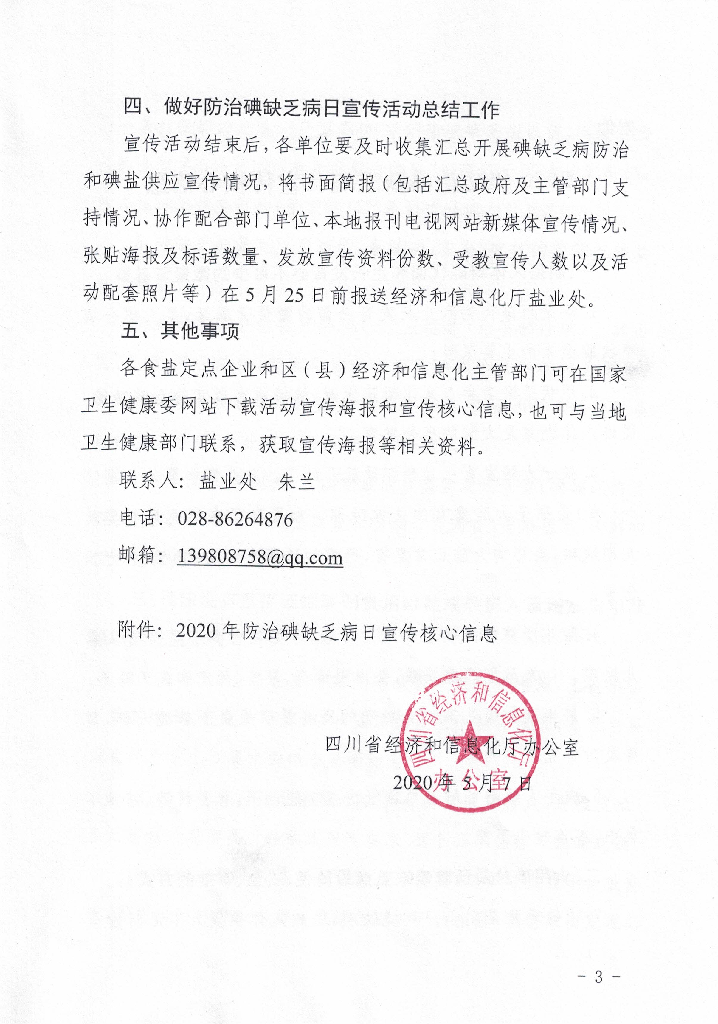 ⑶總公司協調落實經信廳防治碘缺乏病宣傳通知