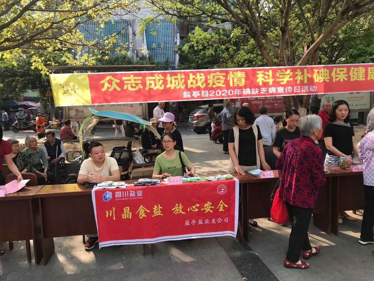 “衆志成城戰疫情,科學補碘保健康”,我司幹部職工在活動中,着力宣傳國企“川晶”加碘食用鹽品牌,用國企責任,川晶品質,向廣大消費者提供合格加碘食鹽,得到廣大消費者的一緻認可,提升了企業形象。