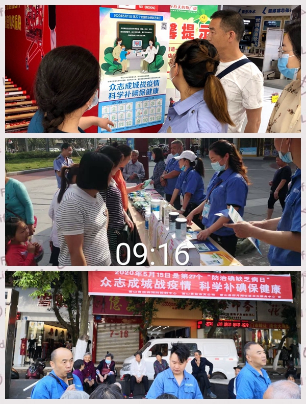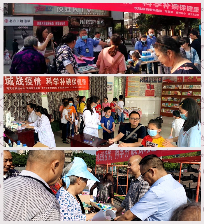 2020年5月15日是我國第27個“防治碘缺乏病日”,5月15日上午各地衛健局、經信局、疾控中心等部門聯合開展了“衆志成城戰疫情,科學補碘保健康”為主題的宣傳活動,現場向群衆宣傳碘缺乏病防治知識,講解食用碘鹽是最經濟、最有效、最安全、最方便的補碘措施。