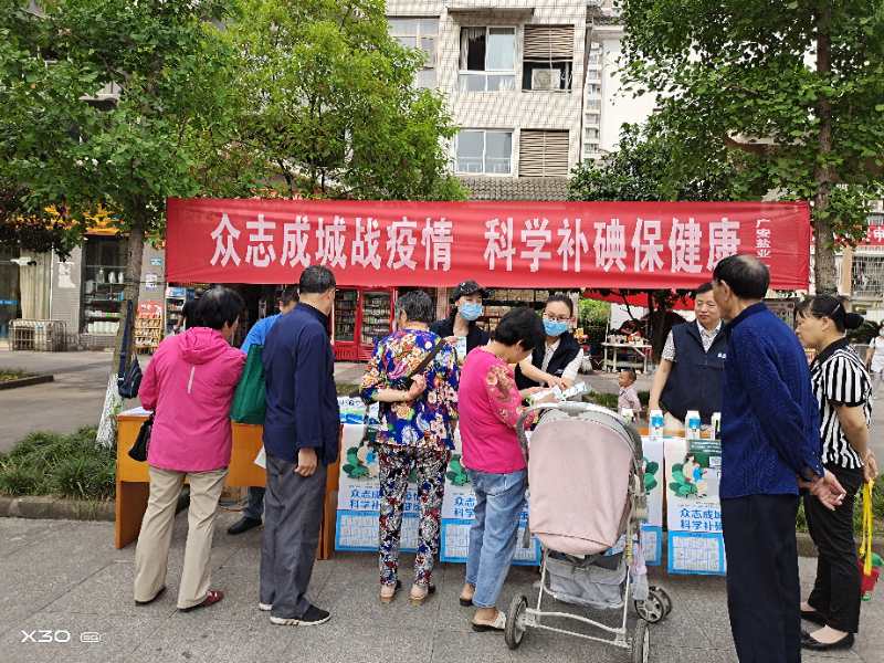 1、2020年5月15日上午9時,公司派出客戶經理參加了由南充鹽業分公司嘉陵支公司、嘉陵區衛健委和疾控中心共同開展的“防治碘缺乏病”宣傳活動。