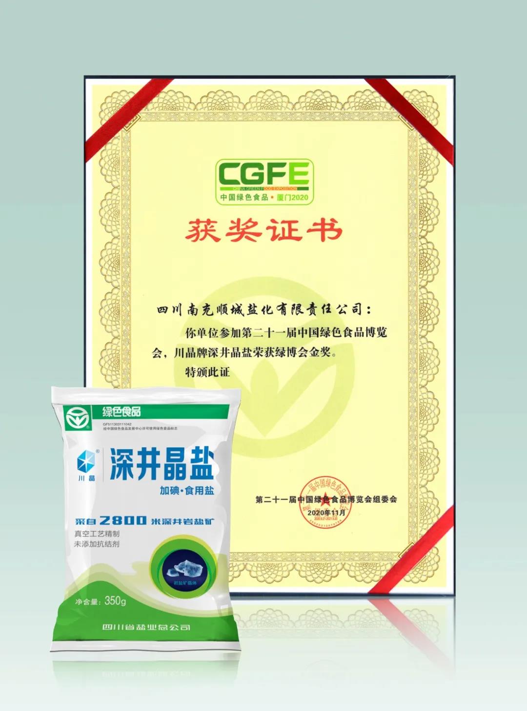 在本屆綠博會上,我公司的“深井晶鹽”是繼第17、18屆綠博會後,第三次獲得綠博會金獎。這是公司環保技改搬遷工程全面竣工,生産技術、設備和工藝全面升級,“深井晶鹽”的品質得到進一步提升的重要成果。