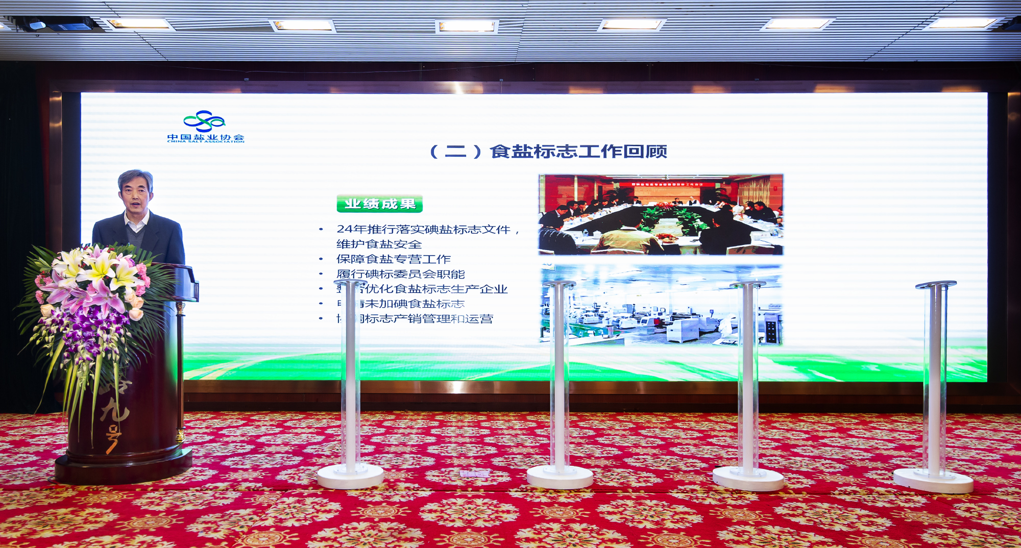 中鹽協會碘鹽标志專業管理委員會主任吳慶欣介紹了碘鹽标志、未加碘食鹽标志以及标碼合一标志的由來、作用和相關工作成績,就新版防僞技術的特點和作用進行了宣貫。碘鹽标志是粘貼或複合在食鹽包裝袋上體現食鹽特殊身份的證明商标,也是合格食鹽身份證明。它最初由聯合國兒童基金會參與設計,經原衛生部牽頭讨論通過,于1996年正式發布實施,幾十年來經過多次改版升級,一直沿用至今,在确保食鹽質量,幫助消費者辨别食鹽真僞,規範食鹽生産、經營行為,特别是保障食鹽加碘消除碘缺乏病目标的完成等方面發揮了重要作用,意義重大。國務院、原衛生部和其他相關部委、地方政府等頒布的《食鹽加碘消除碘缺乏病危害管理條例》《食鹽專營辦法》等相關法律法規中,都有關于食鹽包裝需要加貼明顯标識的明确規定說明。作為“碘鹽标志”證明商标的合法持有人,中鹽協會二十餘年來堅持落實碘鹽标志各項規範制度,履行碘鹽标志專業委員會職能,在優化整合标志生産、銷售和管理運營方面做了大量工作。2017年,中鹽協會還申請了“未加碘食鹽”證明商标,将未加碘食鹽及時納入食鹽統一經營管理,同時方便消費者對未加碘食鹽的購買與識别。互聯網時代,食鹽包裝在加貼食鹽标志的同時也開始噴印二維碼。為簡化生産制作程序,提升食鹽安全和供應安全,中鹽協會自2016年起推出标碼合一食鹽标志方案,通過實踐不斷改進完善,已逐漸被行業大多數企業認可和接受。