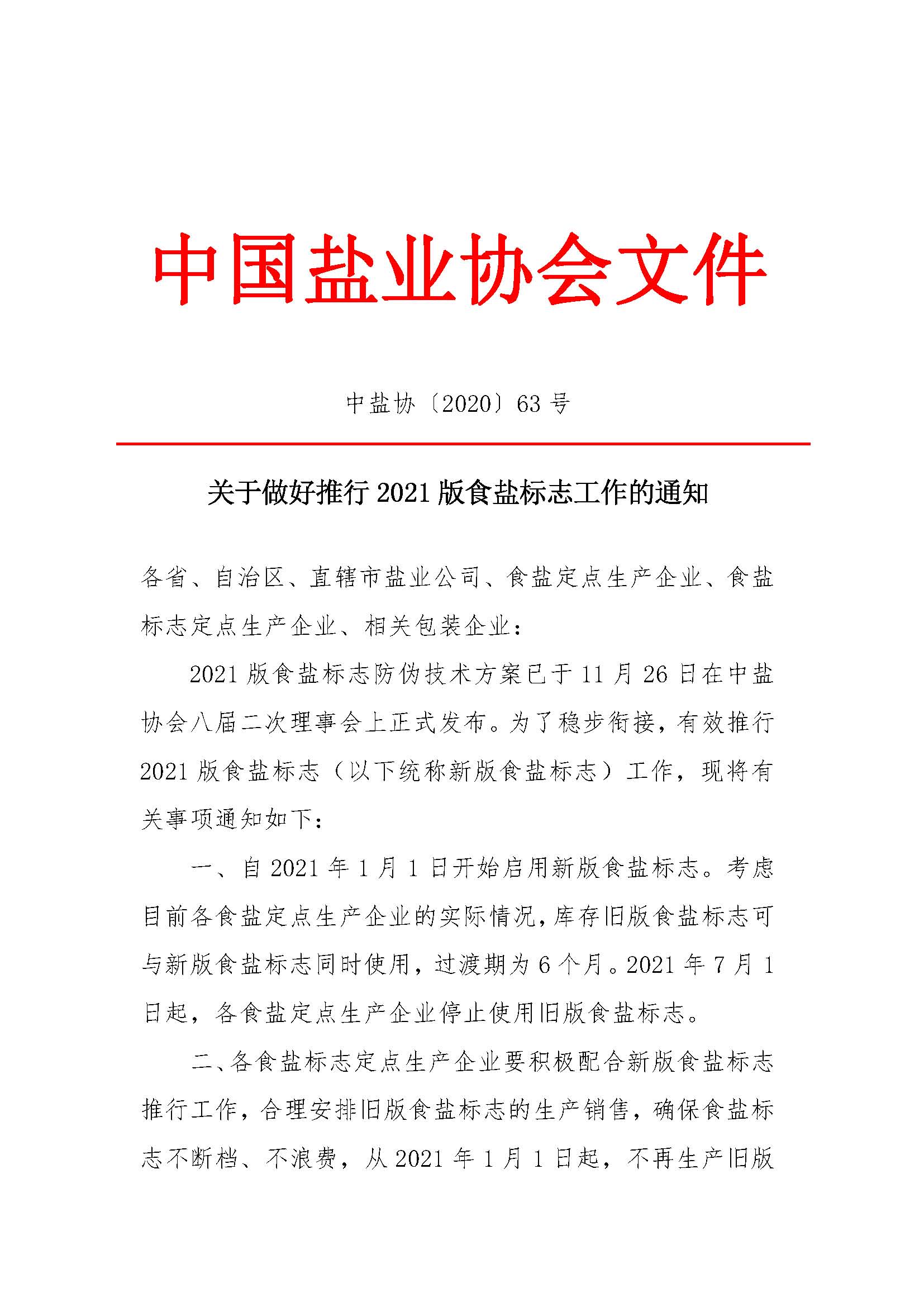 2020年11月26日,中國鹽業協會在京舉辦食鹽标志新版防僞技術啟用發布會,發布并推介新版防僞技術方案。國家知識産權局保護司副司長曹紅英,中國防僞協會副秘書長陳錫蓉,中國鹽業協會理事長、中國鹽業集團有限公司黨委書記、董事長李耀強,執行理事長王小青,副理事長程文傑、宋占京出席發布會,由秘書長劉豔傑主持。