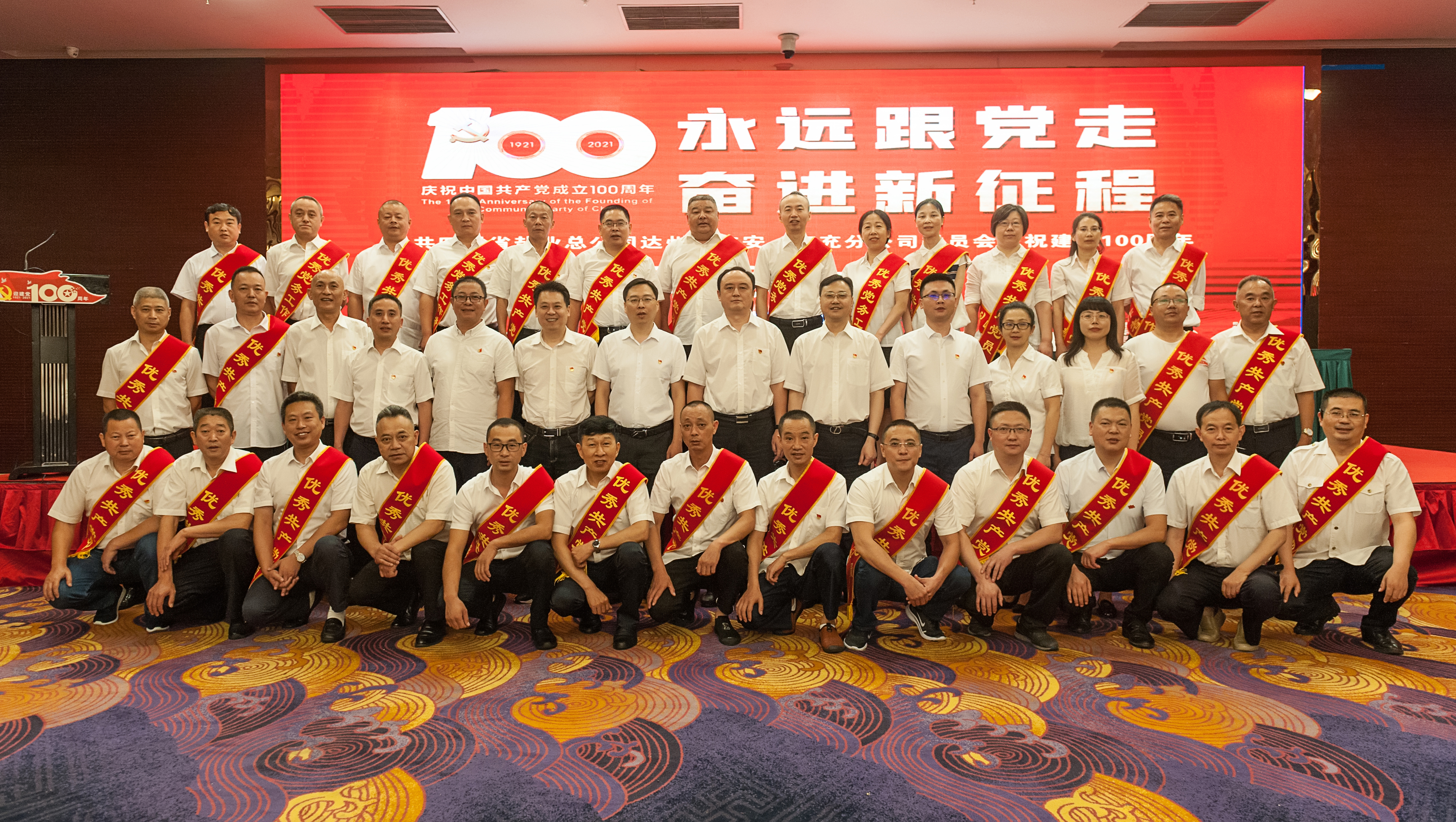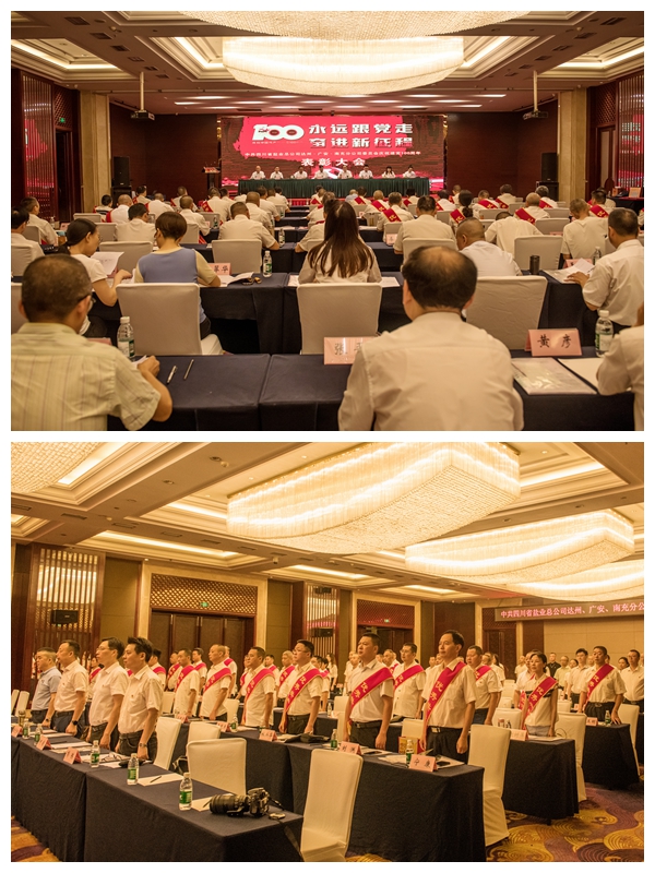 2021年6月30日,在即将迎來中國共産黨百年華誕前夕,經總公司同意,金年会達州分公司、廣安分公司和南充分公司黨委聯合在南充召開慶祝建黨100周年表彰大會。三家分公司領導、二級專員;受表彰的優秀共産黨員、優秀黨務工作者和先進基層黨組織代表;各銷售團隊經理、機關部門部長;南充分公司機關部門副部長、部門職工共80餘人參加會議。省經信廳黨組成員、總公司黨委書記、總經理趙輝,總公司辦公室主任、法務部部長何毅,總公司審計監察部部長彭陳到會祝賀。大會由達州分公司黨委委員、副經理楊佳同志主持。